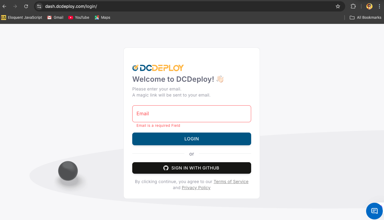 Firstly login into your DCDeploy dashboard using your Github account. If youโre a new user, your account will be created automatically.